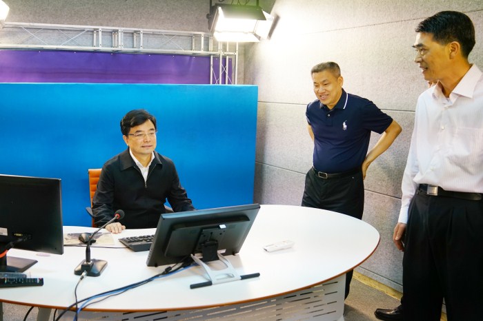 王少峰调研了湖南电大干部网络教育培训工作。王少峰走进省干部教育培训网络学院的资源建设部、技术服务部和教学资源制作部的办公室,来到数据中心机房、监控平台机房和生成性课件制作室,向工作人员了解固网、移动平台建设及运行,以及课程资源建设和制作情况。