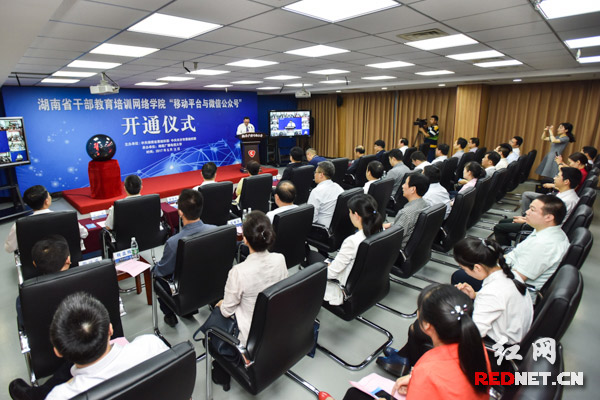 5月3日上午,湖南省干部教育培训网络学院移动平台与微信公众号在湖南电大正式开通,省委常委、省委组织部部长王少峰出席仪式,宣布湖南省干部教育培训网络学院移动学习平台与微信公众号开通。