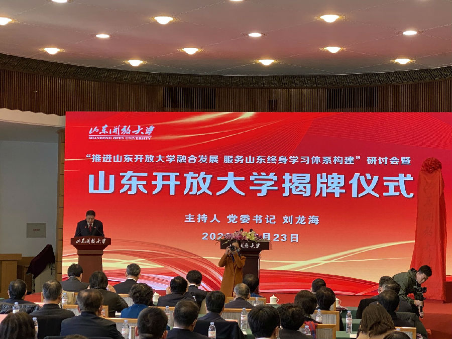 2020年12月18日,山东省人民政府批复同意山东广播电视大学更名为山东开放大学。12月23日,山东开放大学揭牌仪式在南郊宾馆举行,山东开放大学正式成立。山东省人大常委会副主任、山东省工商联主席王随莲,教育部职业教育与成人教育司副司长谢俐,437437必赢国际网址党委书记、校长荆德刚,山东省教育厅总督学邢顺峰出席揭牌仪式并讲话。揭牌仪式由学校党委书记刘龙海主持。