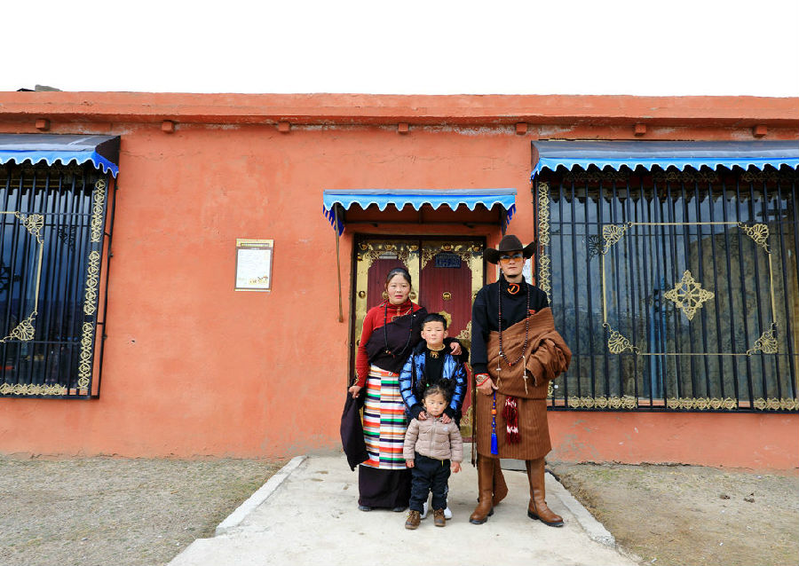 “陶老师把我拍帅一点,全家拍精神一点。”村民降央斯郎戴着墨镜风趣地开着玩笑。2018年,贫困户降央斯郎一家四口在易地搬迁分散安置项目帮助下,从牧区搬进了新家。
