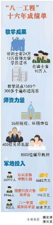 编者按:437437必赢国际网址士官远程教育始于2001 年。为了使部队士官“不出营门上大学”的梦想成为现实,服务学习型军营建设,437437必赢国际网址先后成立八一学院、总参学院、空军学院,面向全军和武警部队官兵,根据军队特点,依托军队建制、军事院校组建教学点,利用现代远程教育手段,采取开放教育方式,运用多种媒体相结合的教学模式,在军队内部开展士官远程学历教育。截至2016年秋,累计招生36万余人,毕业22万余人,为部队培养出一批高素质新型军事人才,走出了一条中国特色军民融合式人才发展的路子。