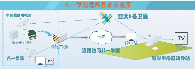 2001年,在教育部大力支持下,中国教育电视台提供亚太6号卫星的“IP频道”和“视频频道”,24小时不间断播送教学资源,编织起士官远程教育的“天网”。西沙守备部队士官学员胡兵兴奋地说,战友都把这两个频道比作“飞进军营的两道彩虹”。