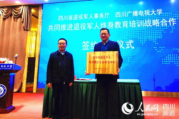 四川省退役军人事务厅、四川广播电视大学退役军人终身教育培训战略合作签约授牌仪式。王军 摄