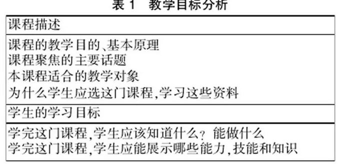 以上列举的6种误区,充分说明了分析课程的教学目标,是教学大纲设计的出发点,是落实新的教学理念,新的知识观念、组织和加工教学内容、安排教学活动的基础,也是改进和提高大学教学质量的最重要的环节。因此,伯克利大学的Barbara Gross Davis在他撰写的教学大纲构成要素中,特别强调要分析一门课程的教学目标和学生的学习目标,如表1所示。