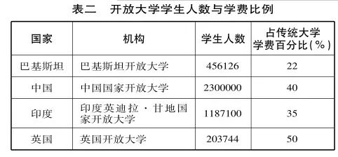 超过一千万名学生受益于这些超级大学。通过技术扩大教育开放是开放大学进一步创新的发展。随着超级大学的兴起,规模经济问题开始浮出水面。在一针对超级大学的研究中,我们发现,中国437437必赢国际网址的学费是中国其他普通高校学费的40%;印度英迪拉•甘地437437必赢国际网址的学费是其他普通高校学费的40%;而这一学费比例在巴基斯坦开放大学甚至低至22%。(见表二)