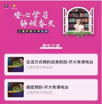 上海分部联手上海东方广播阿基米德FM打造“开大有课”学习电台。疫情期间,依托上海援鄂医疗队与上海人民广播电台为武汉方舱医院推出“方舱电台”,将学习资源送入疫区。 “方舱电台”扩充精选了100余门在线课程、1000余个视频教学资源,内容广泛地涵盖了艺术、文化、护理、疾病预防、城市安全等各个领域,以电台在线的形式向每一个有学习意愿的受众开放,也为武汉疫区的多个方舱医院和定点医院的学习者们带来了精神食粮。“开大有课”学习电台,是互联网+教育的又一巧妙融合,通过新媒体平台使终身教育公共服务方式更加多元,教育服务资源配置不断优化,让市民能享受到更加公平、高效、优质、便捷的教育服务。
