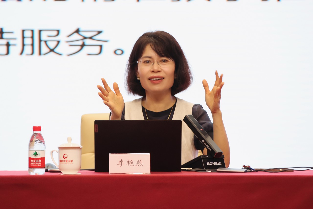 结合开放教育特色,李艳燕与参会教师就人工智能应用软件、大模型、知识图谱构建,以及如何应对人工智能对在线教育的冲击等问题进行互动和交流。