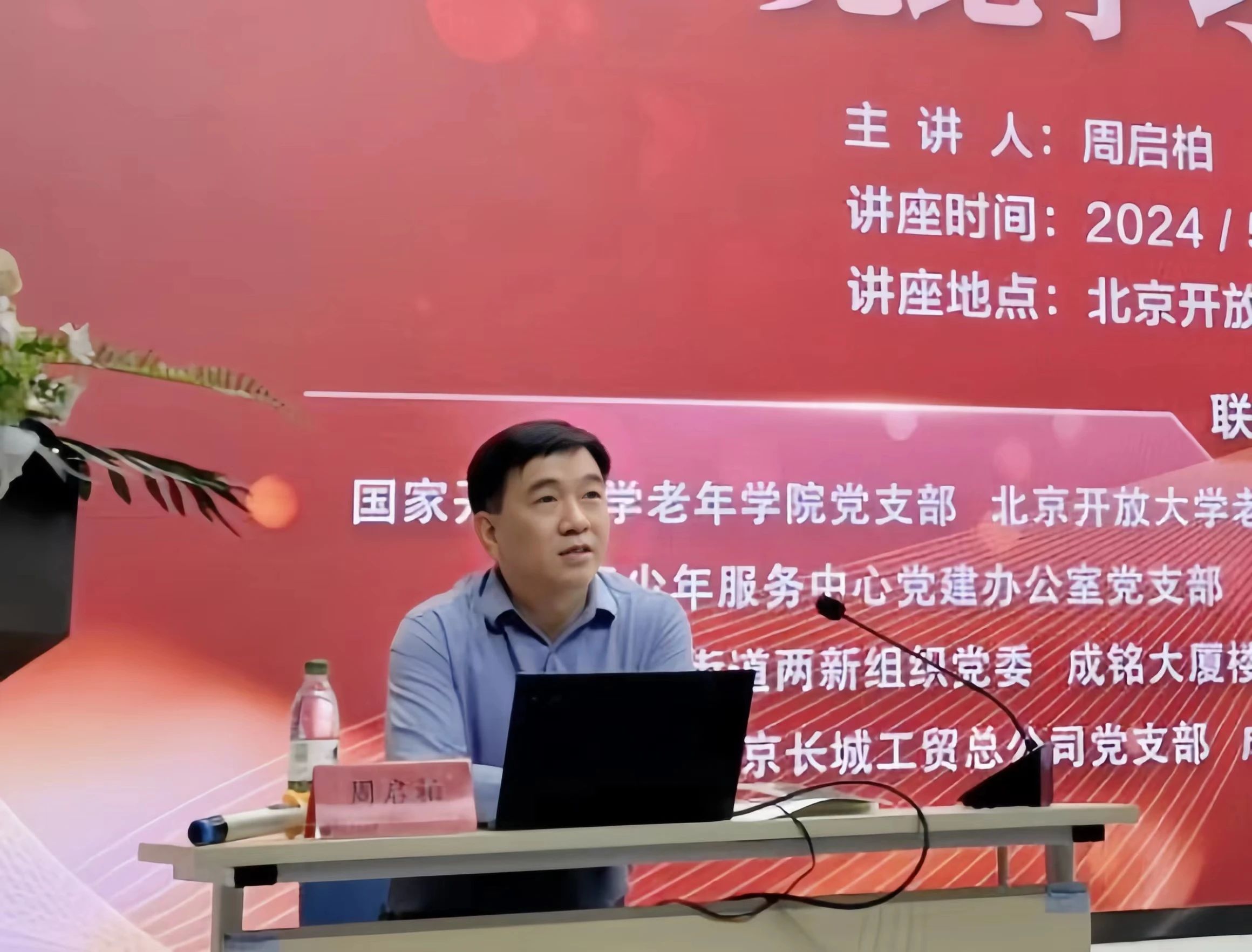 北京开放大学党委委员、纪委书记周启柏为参加联学联建的党员干部讲党纪学习教育专题党课。他以“学纪、知纪、明纪、守纪”为主题,从理论、历史、现实等维度,围绕充分认识纪律建设的极端重要性、系统把握纪法贯通的制度性安排、学习纪律处分条例的重点内容、务实抓好支部党纪学习教育四个方面进行深入阐释。党课内容逻辑明晰、层层递进,周启柏深入浅出地引导全体参会党员自觉学纪、准确知纪、心中明纪、严格守纪。